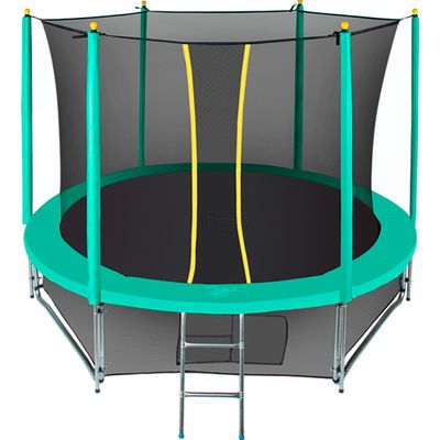 Комплектация - каркас батута, комплект пружин, защитный мат, верхняя защитная сетка, нижняя защитная сетка, лестница, ключ для установки пружин, набор инструментов и крепежей.