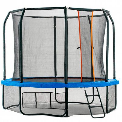 Комплектация - каркас батута, комплект пружин, защитный мат, верхняя защитная сетка, нижняя защитная сетка, лестница, ключ для установки пружин, набор инструментов и крепежей.