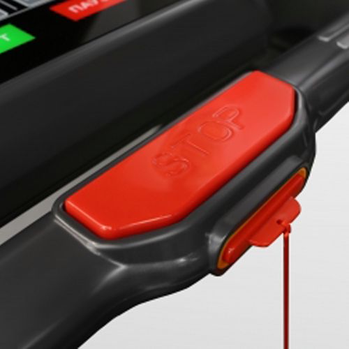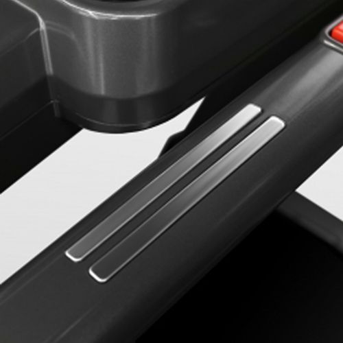 Антискользяцие алюминиевые площадки для ног справа и слева от бегового полотна, эргономичные поручни с датчиками пульса, увеличенные боковые поручни, покрывающие большую часть беговой поверхности, два больших отсека для бутылки с водой и принадлежностей.