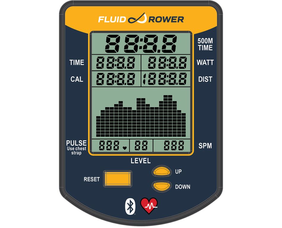 время, дистанцию, время прохождения 500, гребки в минуту, пульс, нагрузку в Ваттах, калории |